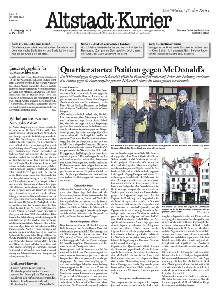 Presse Artikel Blick 28.3.26 Tagblattzürich 11.3.26 Altstadt-Kurier 5.3.26 Blick 6.6.25 Tagblattzürich 11.6.25 NZZ 5.6.25 Verschiedene Medien 4.6.25 Tagesanzeiger 4.6.25